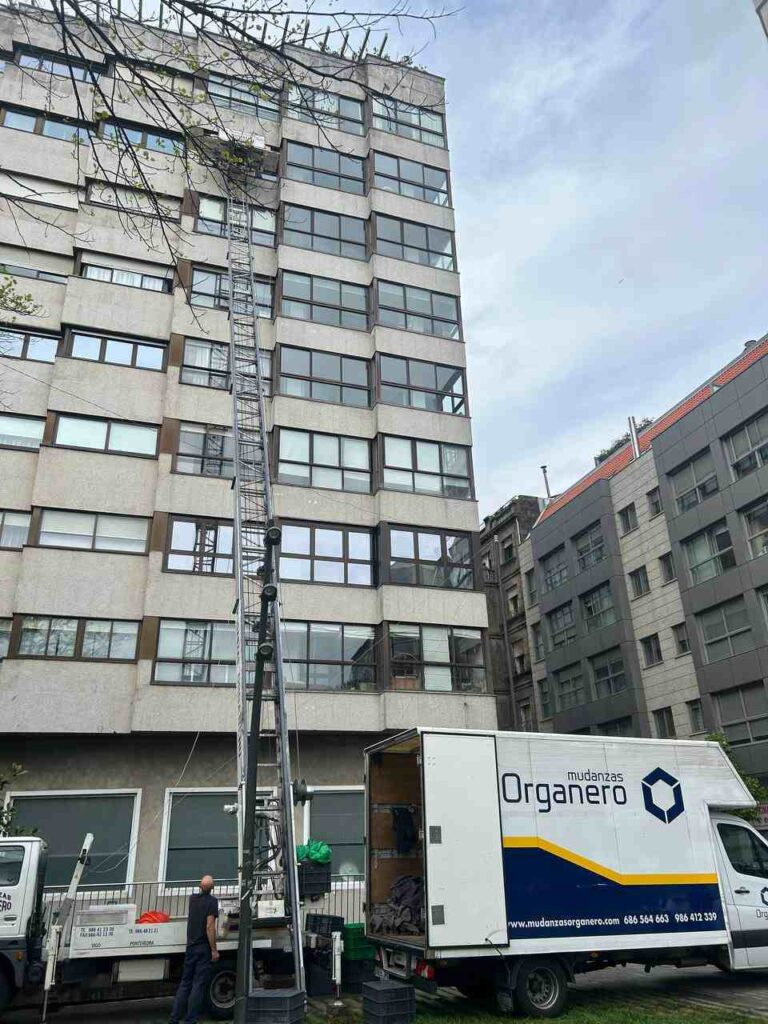 Mudanzas Organero en Vigo ofrece un servicio especializado de elevador de fachada que garantiza mudanzas rápidas, seguras y sin complicaciones, ideal para muebles voluminosos o en edificios con acceso difícil. Este sistema permite trasladar electrodomésticos, cajas y mobiliario directamente por la ventana o balcón, evitando daños en escaleras y zonas comunes.