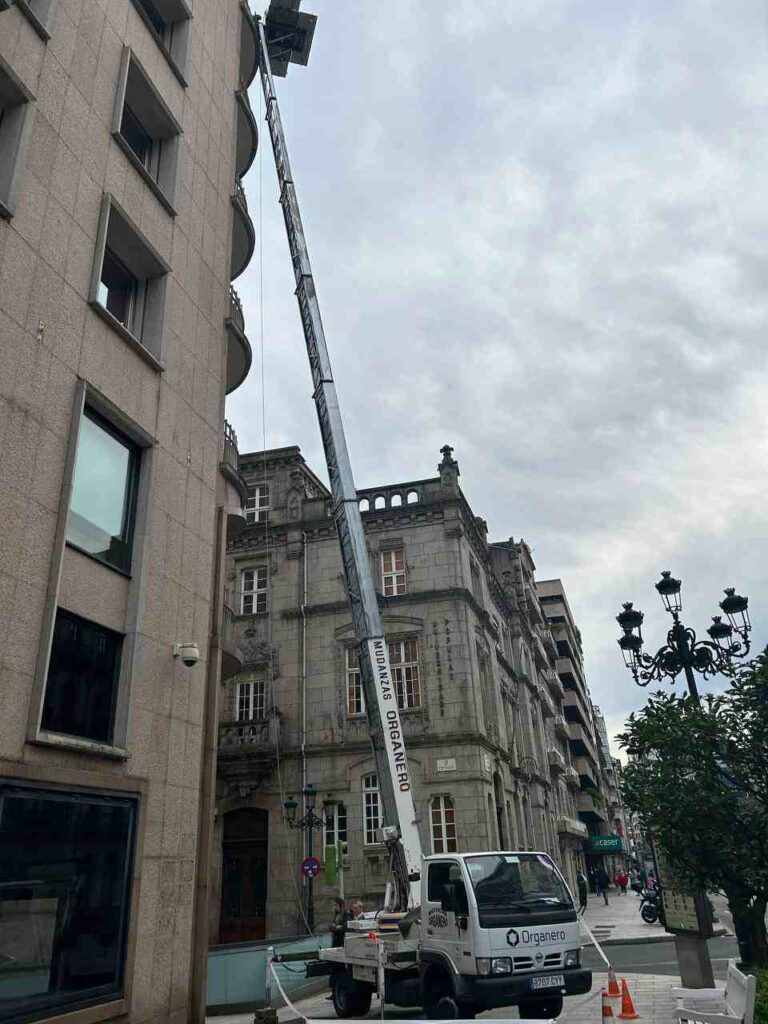 El uso de elevadores de fachada en mudanzas es una solución eficiente y segura para trasladar muebles y objetos voluminosos, especialmente en lugares donde el acceso por escaleras o ascensor es limitado en Vigo.